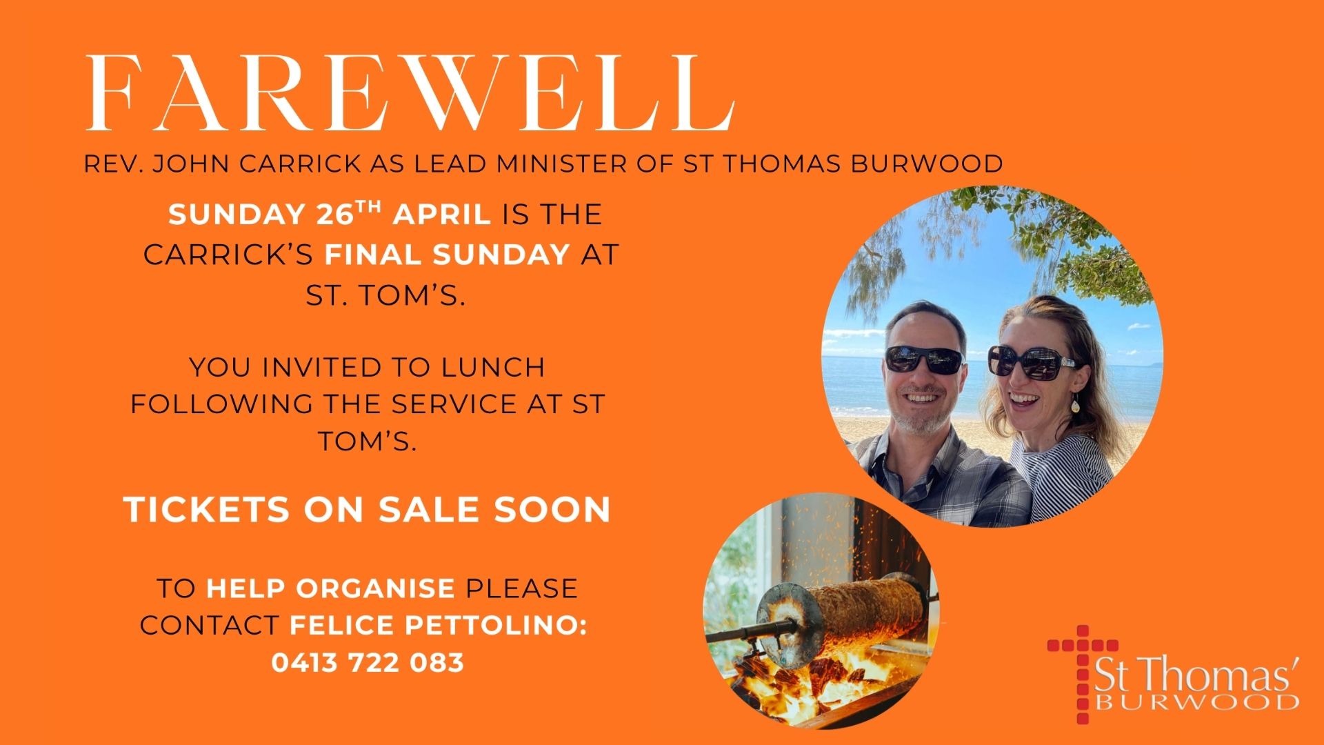 As we prepare to send off John and Susie, who have faithfully served our community for 10 years, we would like to invite every member of St Tom's to show their love and appreciation.
