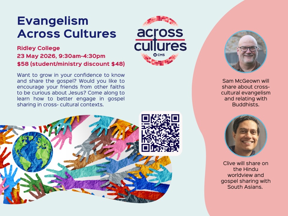 CMS is giving Victorian churches a unique opportunity to hear from two interstate specialists in the area of cross-cultural evangelism, to encourage our churches to be thinking more strategically about the mission field that is our own suburb or town!